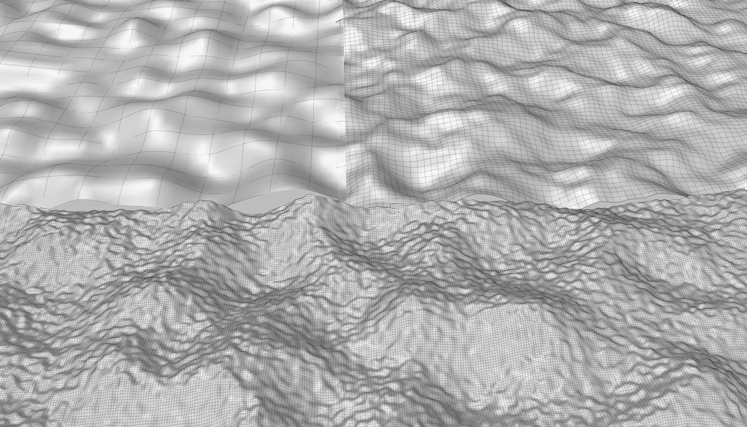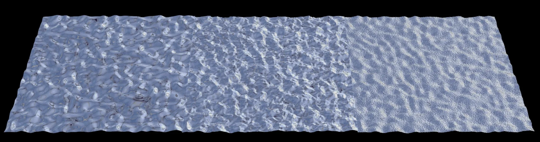 By randomly grouping figures at different spatial frequencies, more sophisticated surface textures may be produced.