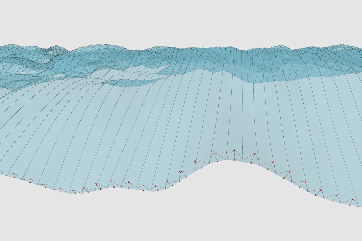 A pleated surface is formed by constructing an edge pleat, then sweeping it along two curves