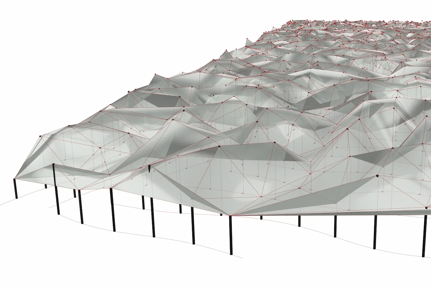 Points randomly raised to form Delaunay mesh