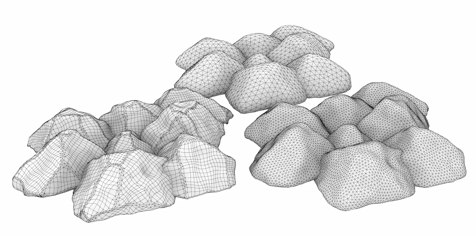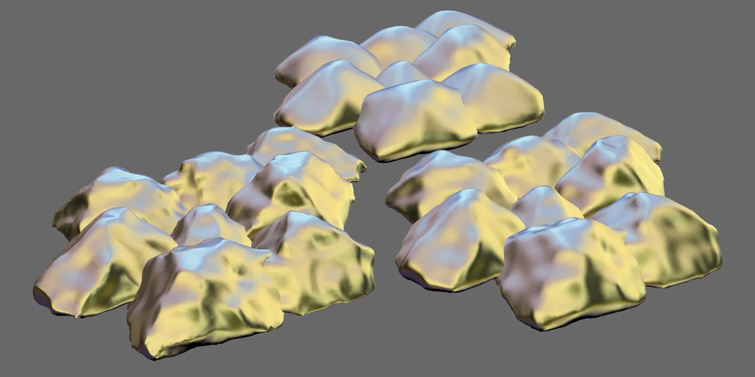 To create natural rocks, follow the Field Morph with both the Tri-Remesh and Laplacian Smoothing (Weaverbird Plug-In).