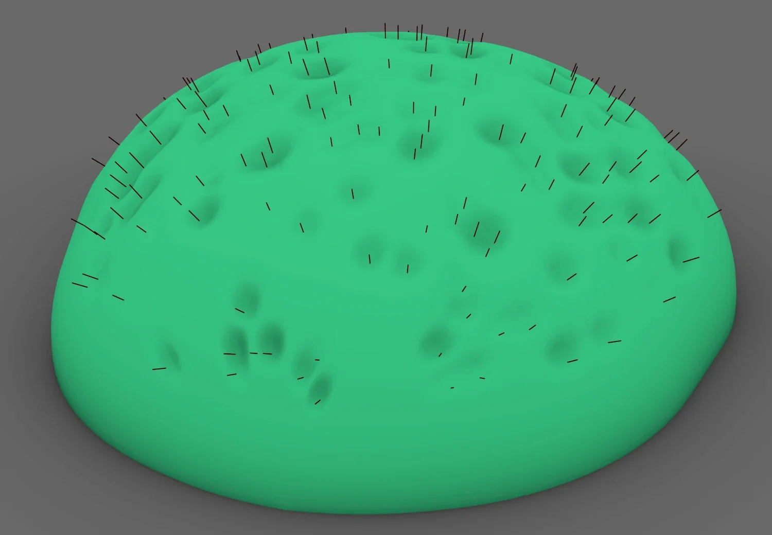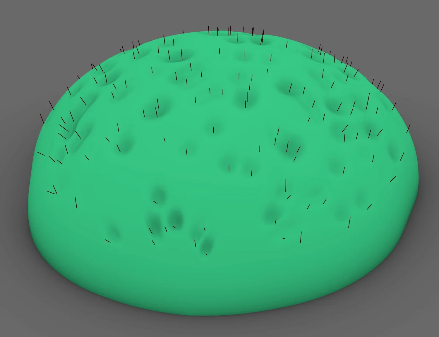 The selected hair cell points are moved using a randomized, mixed (z and normal) vector.