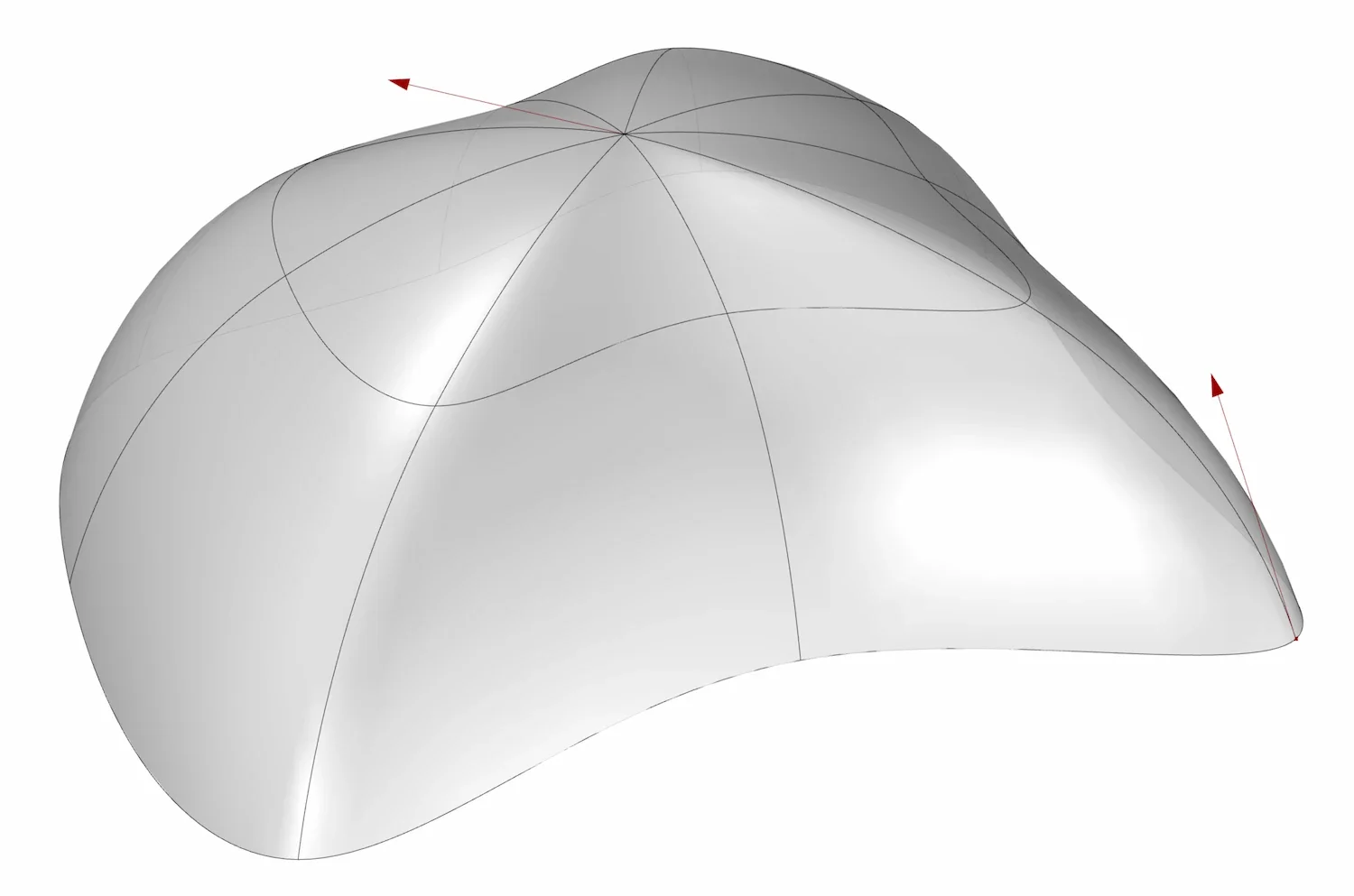 A bi-arc is drawn from the point of maximum curvature farthest from the center.
